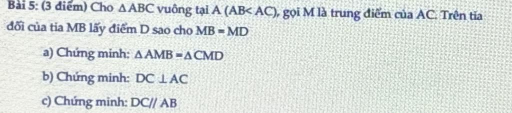 nên $\triangle$`AMB =` $\triangle$`CMD` (c.g.c)