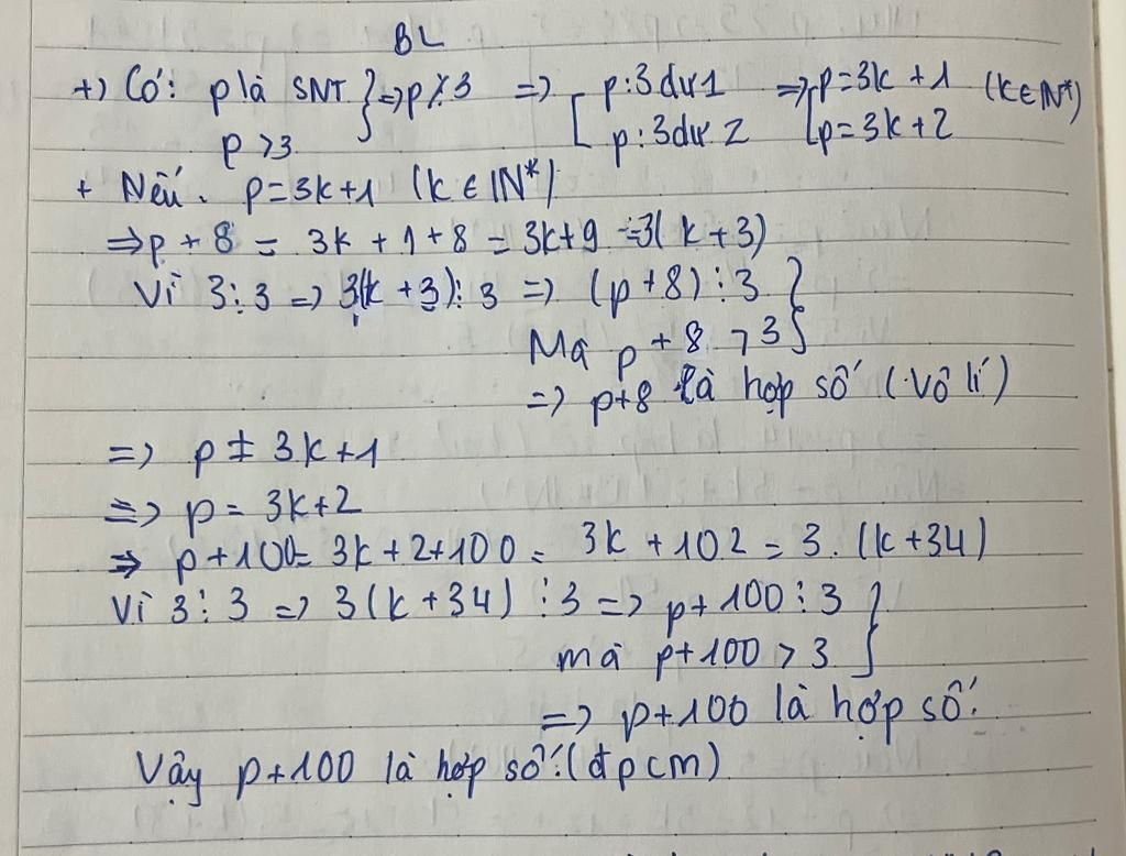 Cho p là số nguyên tố > 3, p + 8 cũng là số nguyên tố. Chứng minh rằng (p + 1) $\vdots$ 6