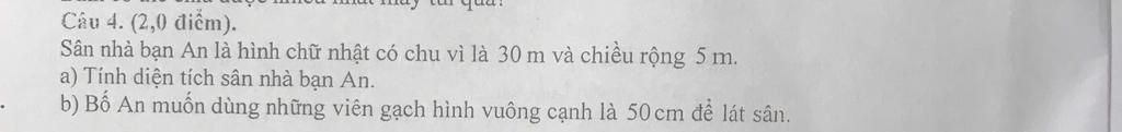 Đáp số: `a) 50m^2; b) 200` viên gạch