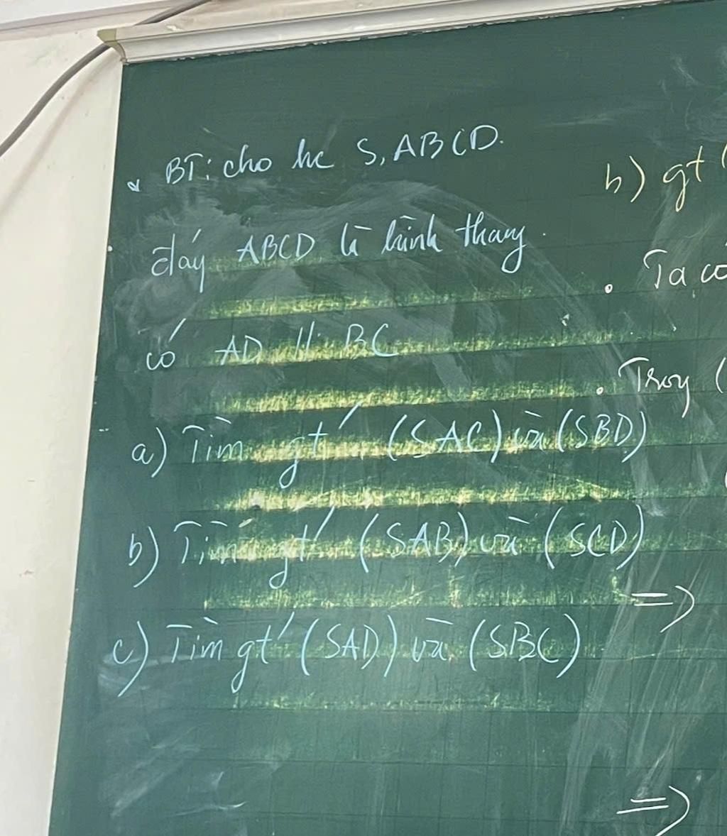 $\begin {cases} AD // BC \\ AD \subset (SAD) \\ BC \subset (SBC) \\ S \in (SAD) \cap (SBC) \end {cases}$