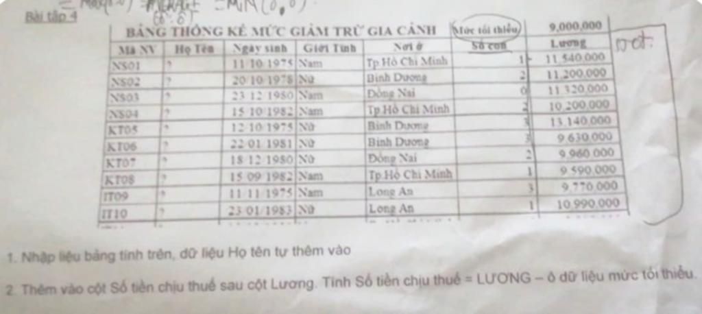 BẢNG THÔNG KẺ MỨC GIẢM TRỪ