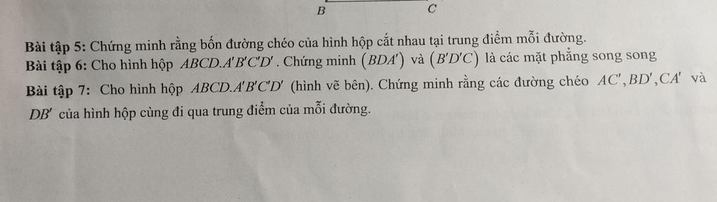 Xét tứ giác $BB'D'D$ có $BB' // DD'$ và $BB' = DD' \Rightarrow BB'D'D$ là hình bình hành