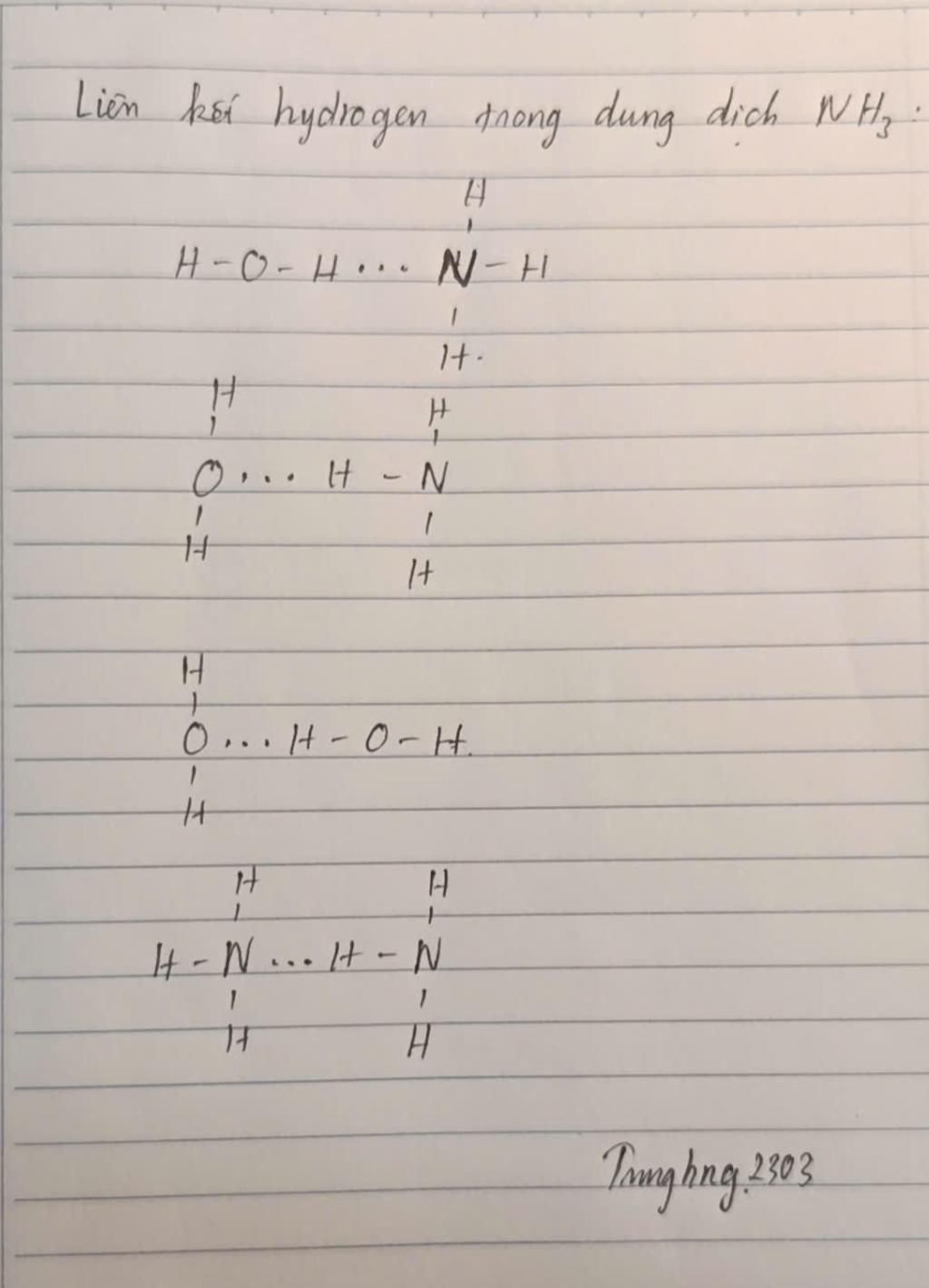 Chỉ ra liên kết H trong dung dịch NH3