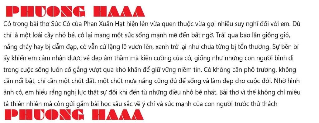 Viết đoạn văn nêu cảm nhận của em về" Cỏ" trong bài thơ Sức Cỏ của tác giả Phan Xuân Hạt