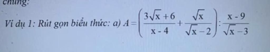 `=((3)/(\sqrt{x}-2)+(\sqrt{x})/(\sqrt{x}-2)). (\sqrt{x}-3)/((\sqrt{x}-3).(\sqrt{x}+3))`