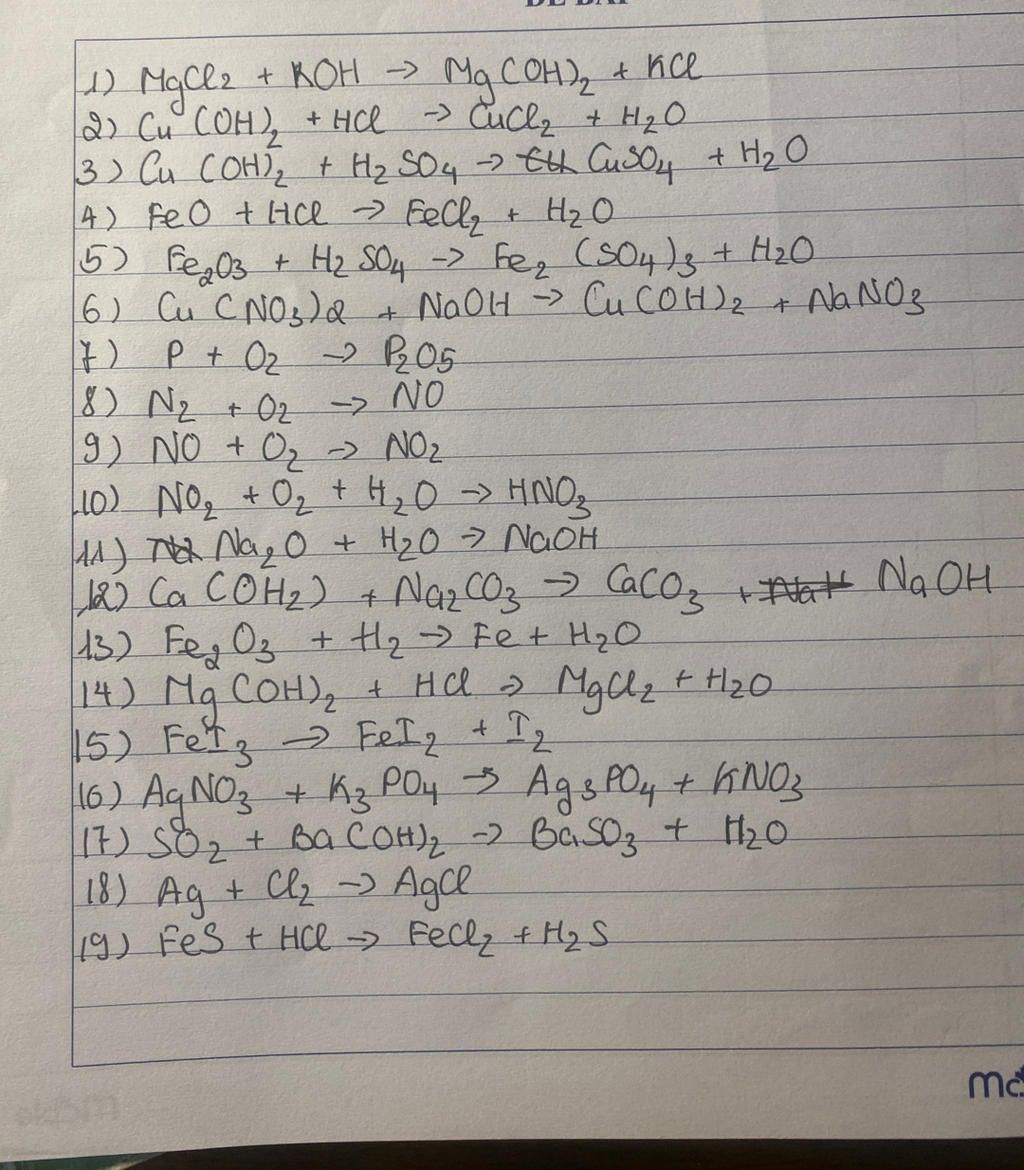 6/Cu(NO3)2+2NaOH->Cu(OH)2+2NaNO3