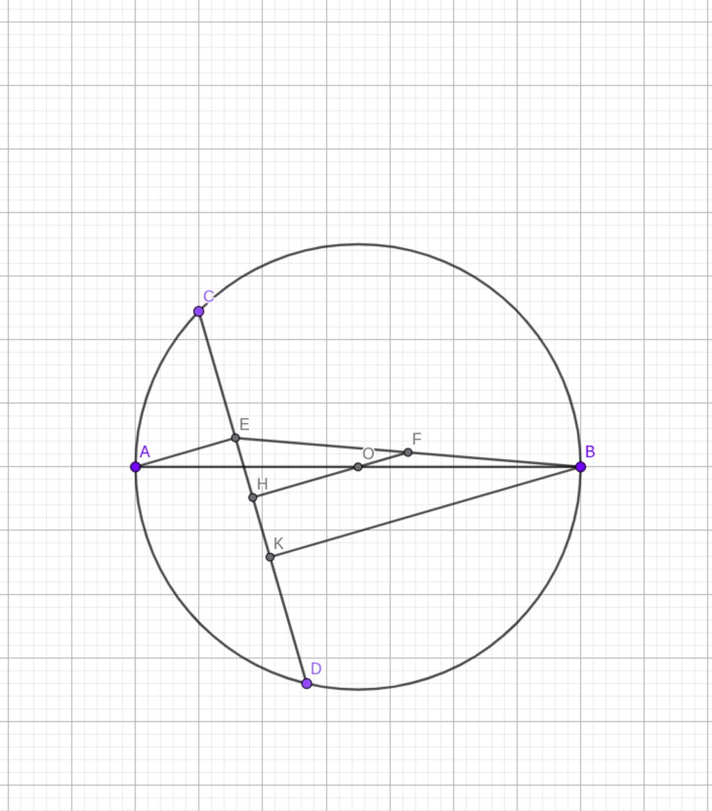 OH vuông góc CD nên OH // AE//BK , mà O là trung điểm AB nên OH là đường trung bình