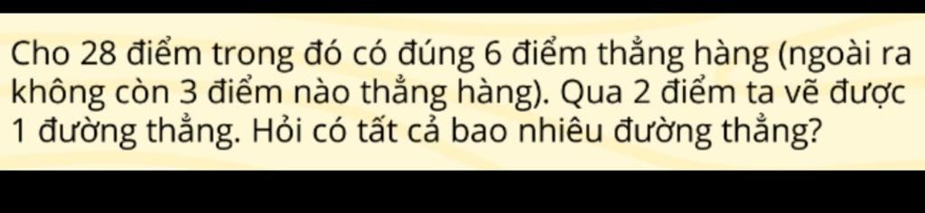 $\to$Qua $28$ điểm vẽ được $\dfrac{28\cdot (28-1)}2=378$ đường thẳng