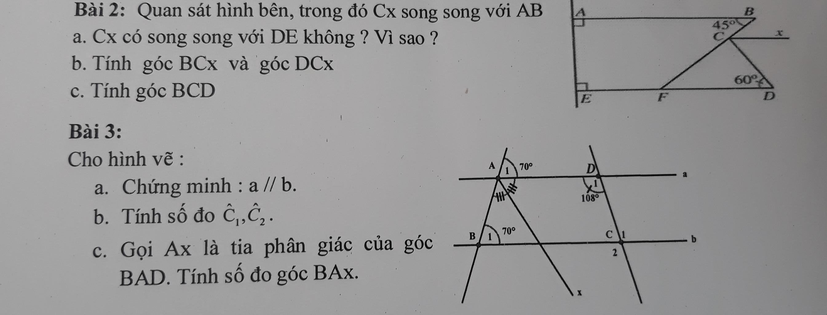 b.Vì $Cx//AB, Cx//DE$