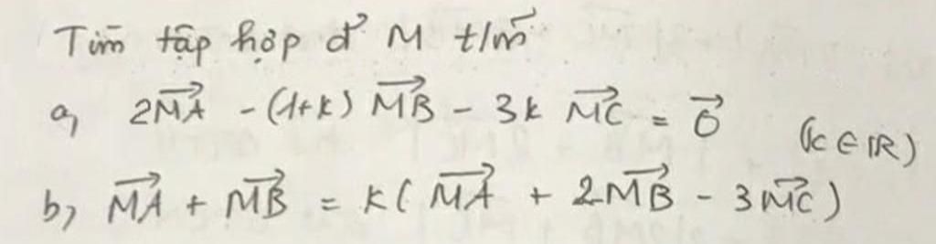 $\to 2\vec{MI}=k(\vec{MA}-\vec{MC}+2(\vec{MB}-\vec{MC}))$ với $I$ là trung điểm $AB$