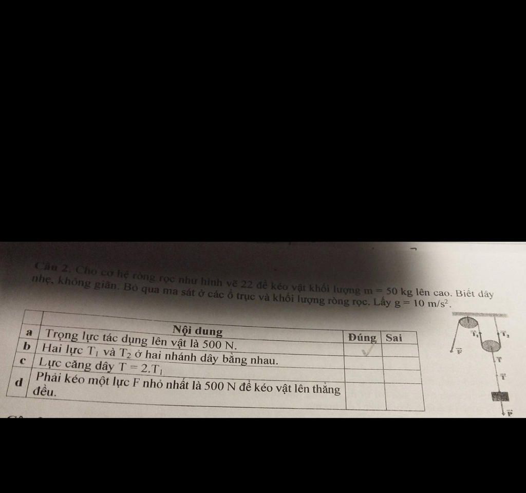 d) Để kéo vật lên thẳng đều thì: