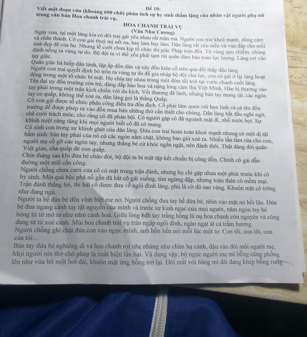 Viết một đoạn văn (khoảng 600 chữ) phân tích sự hy sinh thầm lặng của nhân vật người phụ nữ