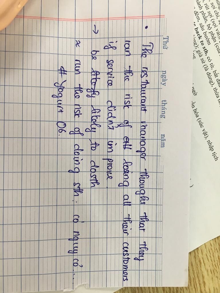 `-` Trans: Người quản lý nhà hành nghĩ rằng họ có nguy cơ mất tất cả khách hàng nếu dịch vụ không được cải thiện.