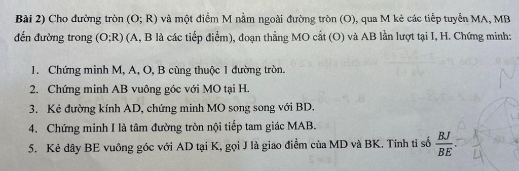 2.Vì $MA, MB$ là tiếp tuyến của $(O)$