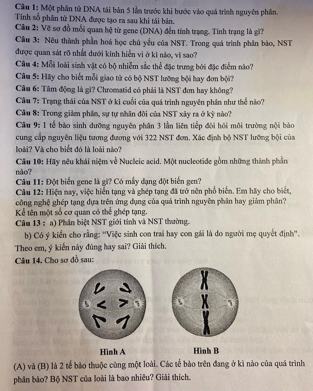 Câu 1: Một phân tử DNA tái bản 5 lần trước khi bước vào quá trình nguyên phân.