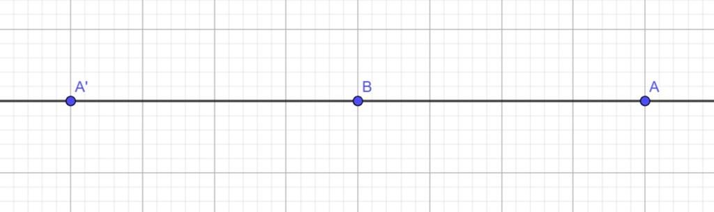 ví dụ : Trong hình, có điểm `A'` đối xứng với điểm `A` qua `B`