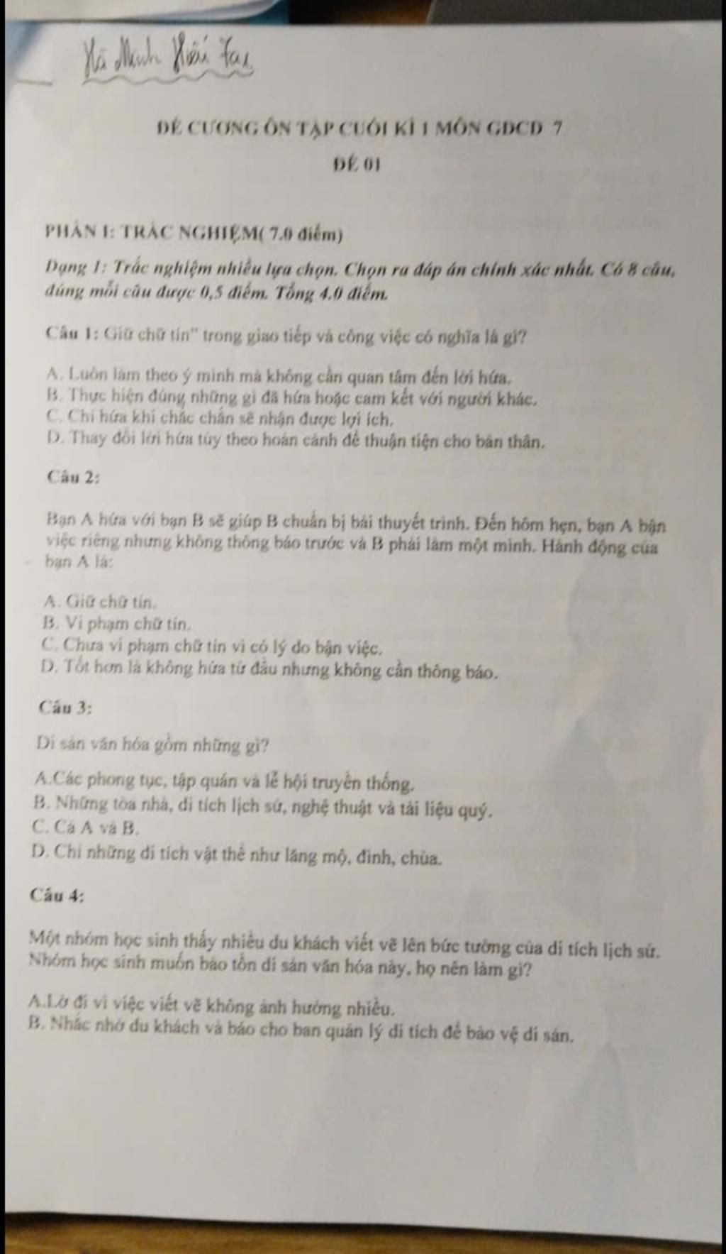 Giữ chữ tín là nói đi đôi với làm, không nuốt lời.