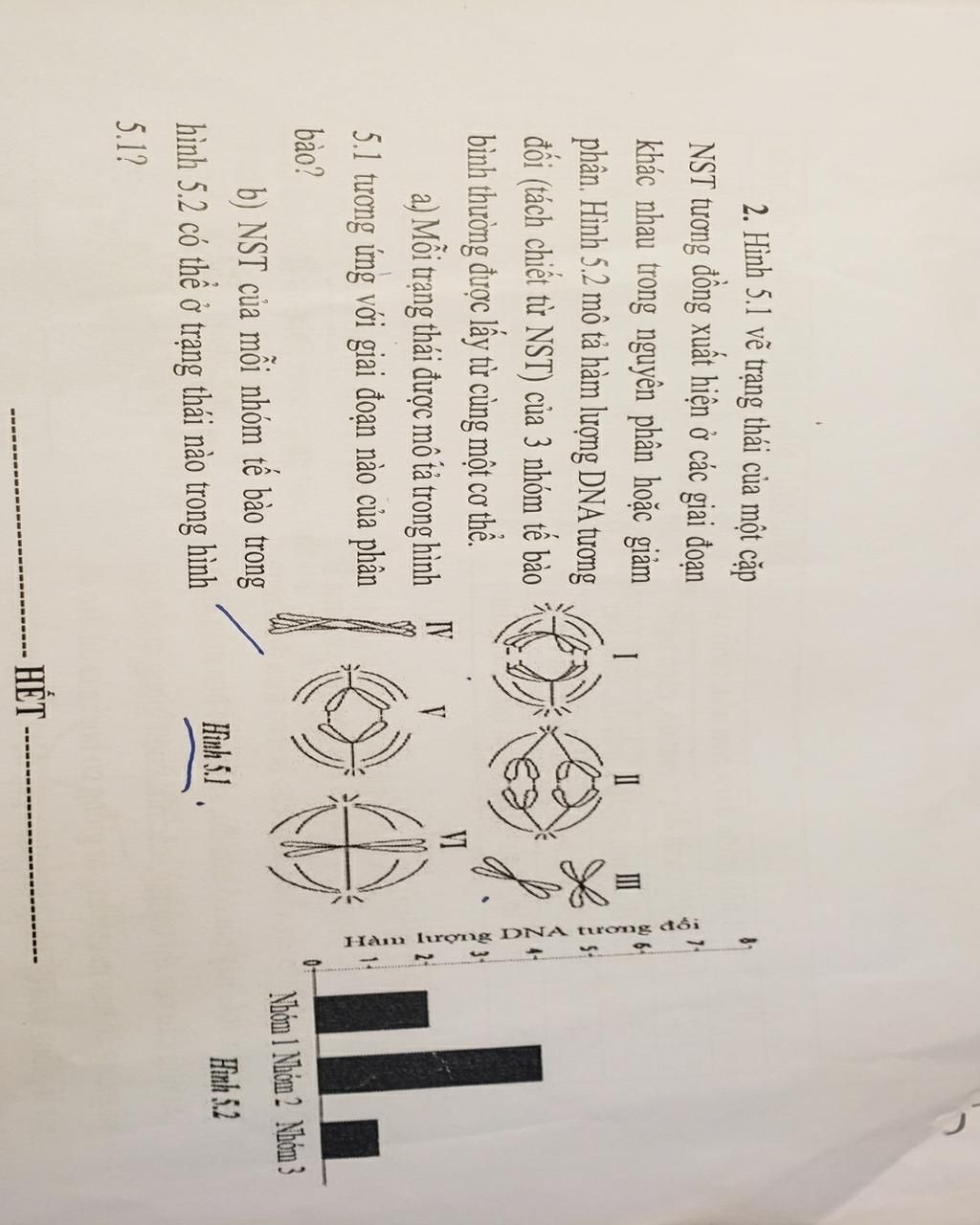 Trạng thái IV, VI, I: Tương ứng với Hàm lượng DNA = 4 vì NST ở dạng kép và chưa hoàn tất chia đôi tế bào để giảm hàm lượng DNA.