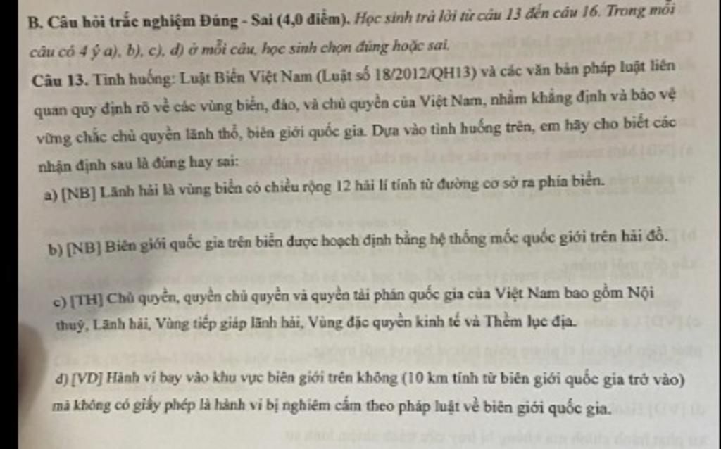 b) Sai. Biên giới quốc gia trên biển được hoạch định bằng ranh giới ngoài của lãnh hải, không phải bằng hệ thống mốc quốc giới trên hải đồ.