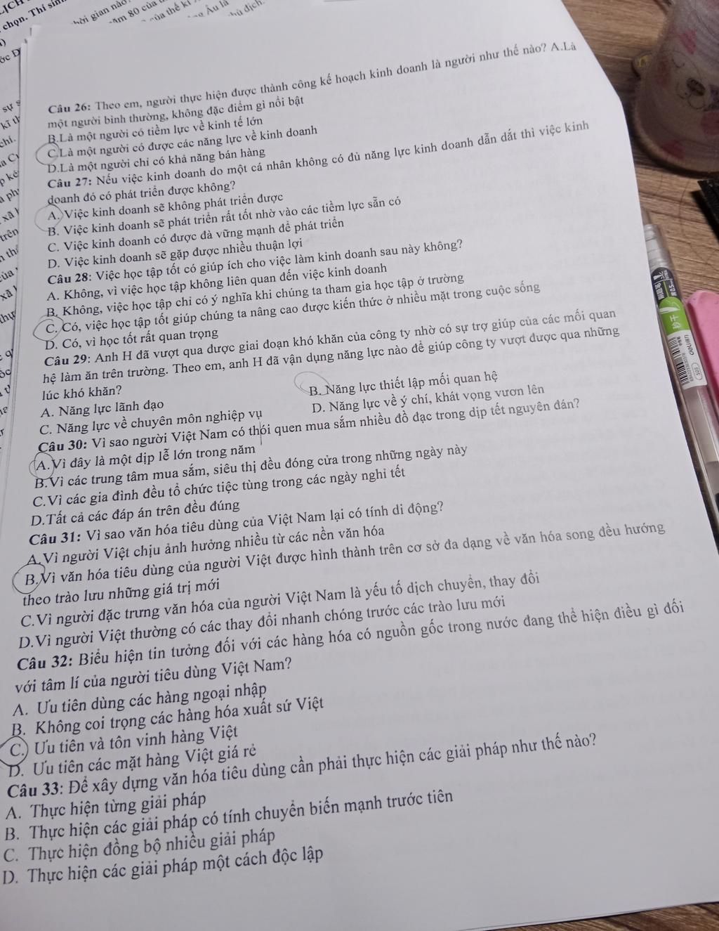 Câu 26: Theo em, người thực hiện được thành công kế hoạch kinh doanh là người như thế nào? A.Là