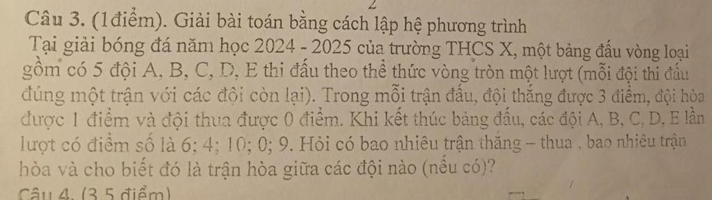 gồm có 5 đội A, B, C, D, E thi đấu theo thể thức vòng tròn một lượt (mỗi đội thi đấu