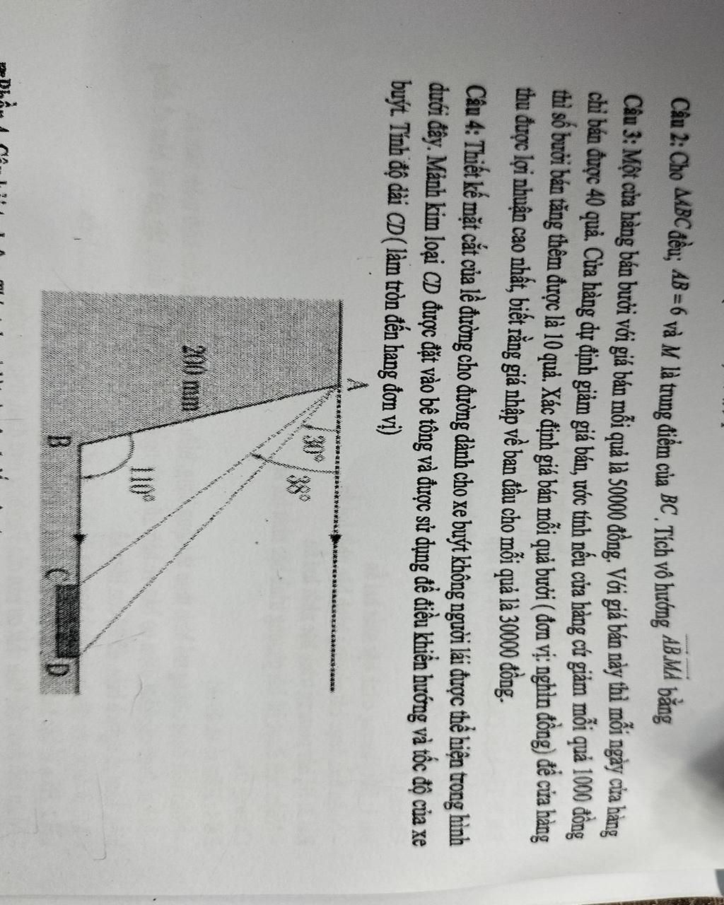 Câu 3: Một cửa hàng bán bưởi với giá bán mỗi quả là 50000 đồng. Với giá bán này thì mỗi ngày cửa hàng