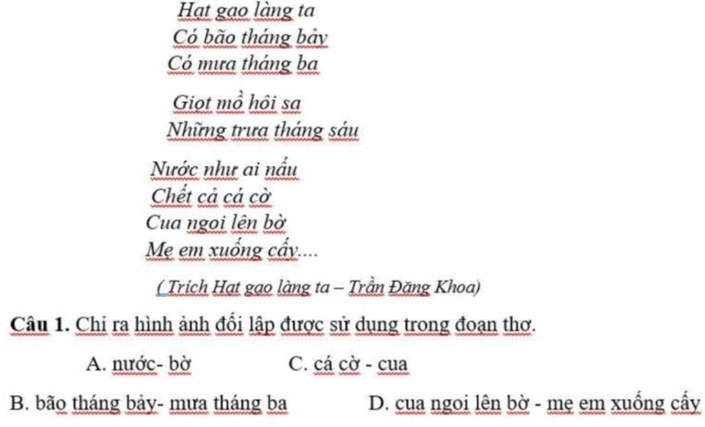 `D.` cua ngoi lên bờ - mẹ em xuống cấy.