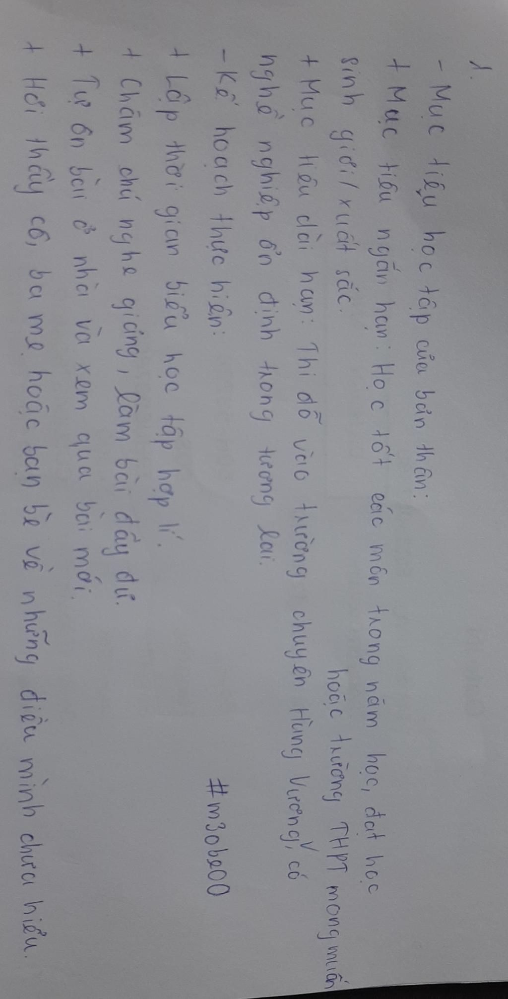 mục tiêu dài hạn: Học tập tốt để thi đỗ vào trường THPT mong muốn, có nghề nghiệp ổn định mong muốn trong tương lai