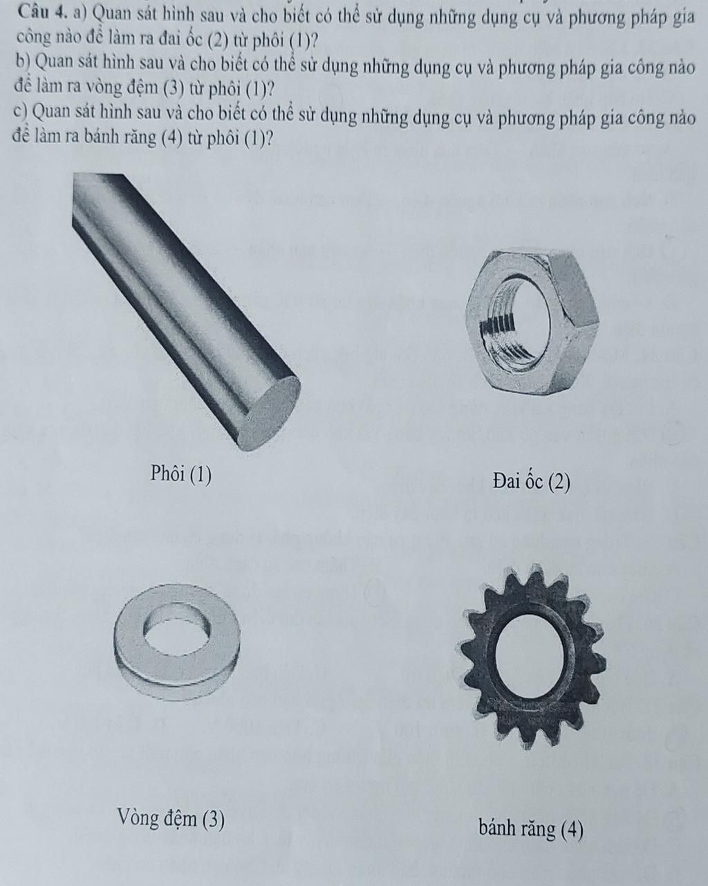 công nào để làm ra đai ốc (2) từ phôi (1)?