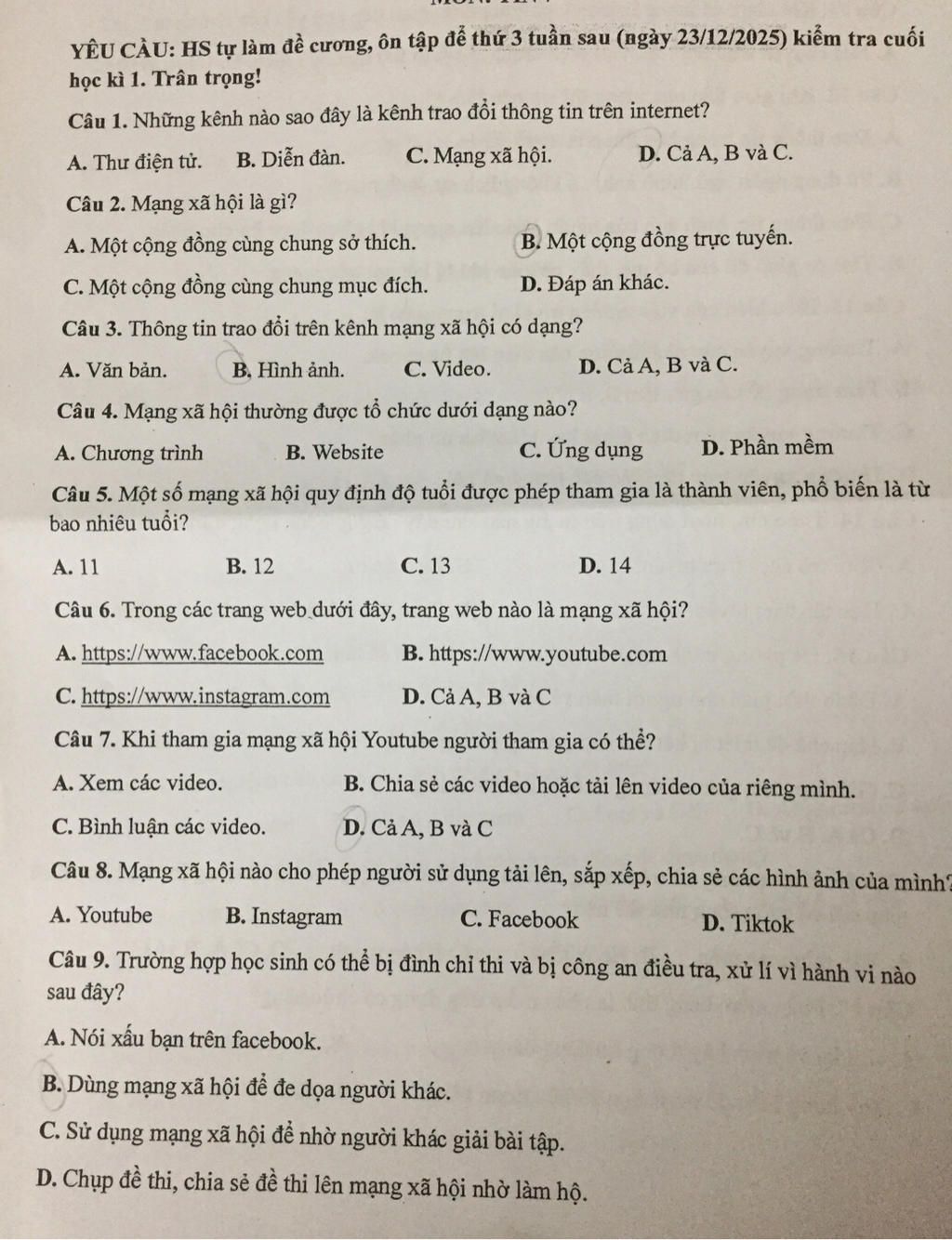 Câu `9: D `(Chụp đề thi, chia sẻ đề thi lên mạng xã hội nhờ làm hộ)