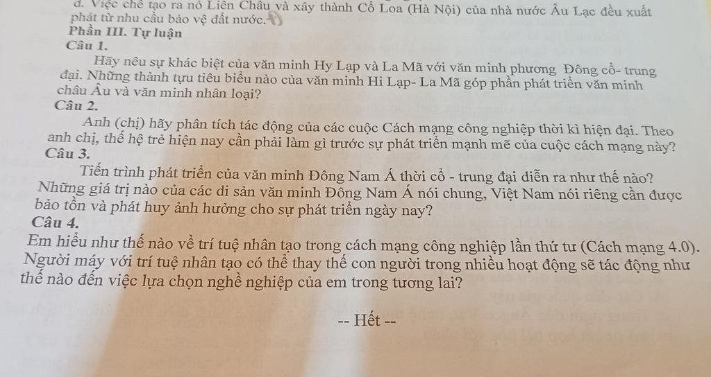 Câu 2 Tác động của các cuộc Cách mạng công nghiệp hiện đại: