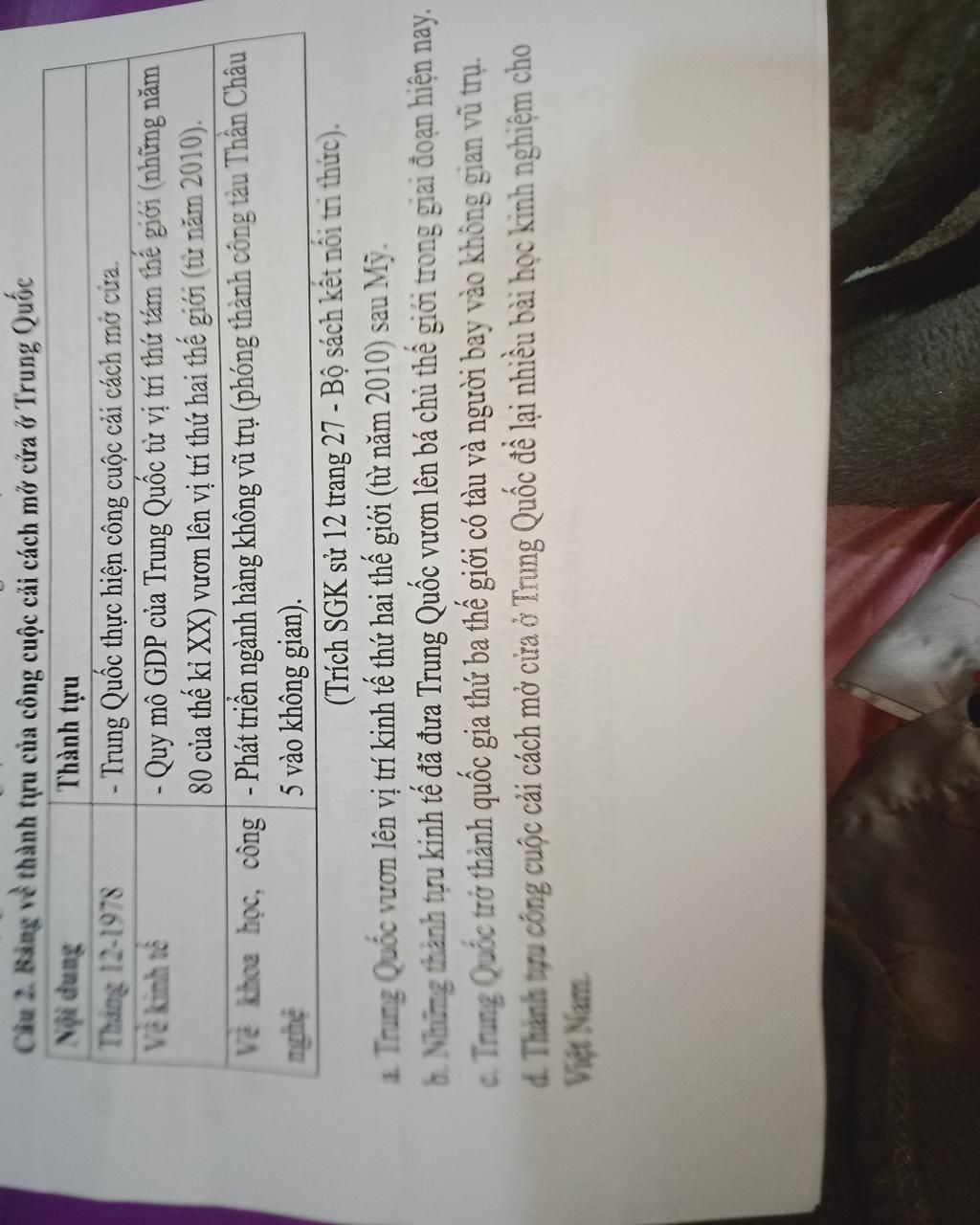 Câu 2. Bằng về thành tựu của công cuộc cải cách mở cửa ở Trung Quốc
