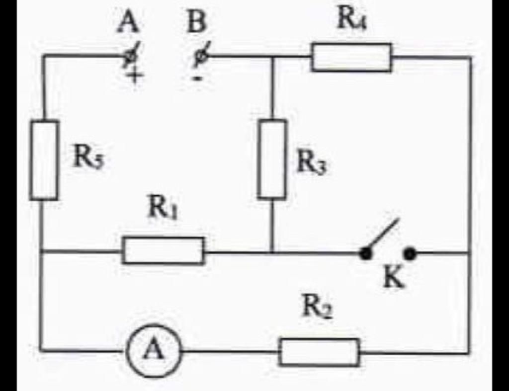 Khi K đóng thì chập hai điểm ở hai đầu $R_3$ và $R_4$ lại