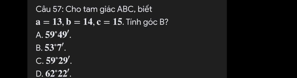 `→` Chọn `C. 59^@ 29′`