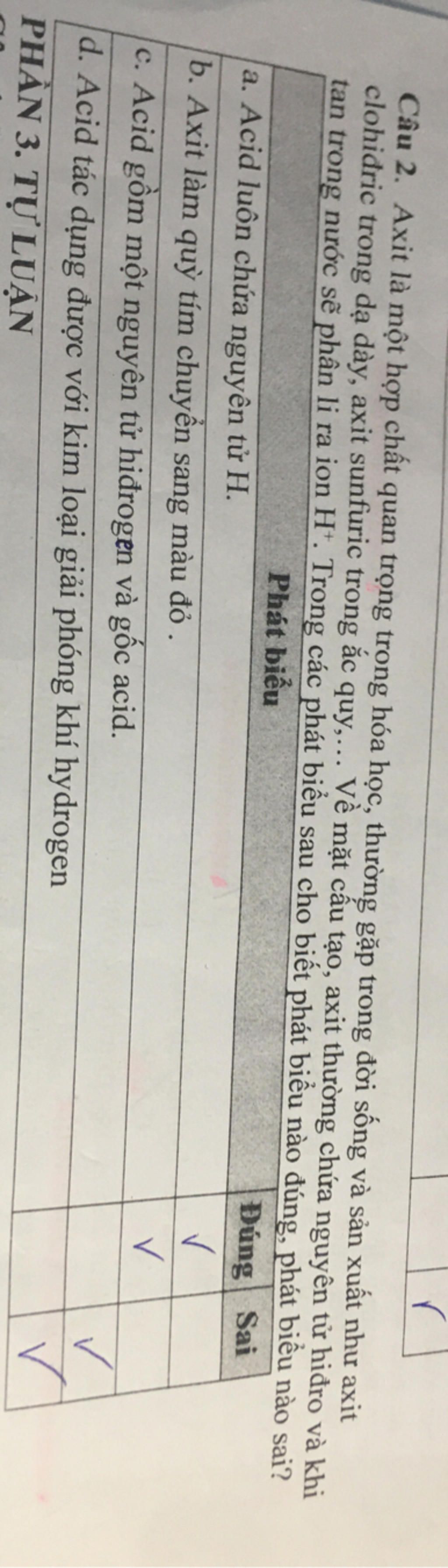 `D =>` `Đúng`. Một số dung dịch acid phản ứng với kim loại đứng trước hidrô trong dãy hoạt động hóa học để tạo thành muối và giải phóng khí hydrogen