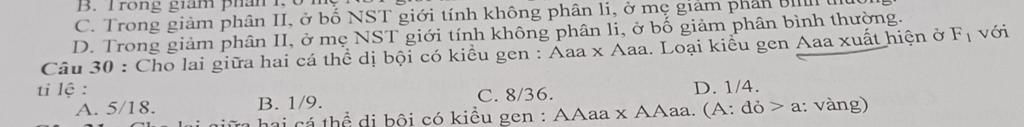 Kiểu gen Aaa xuất hiện ở F1 là: (Aa x a) + A x aa) x 2 = 5/18