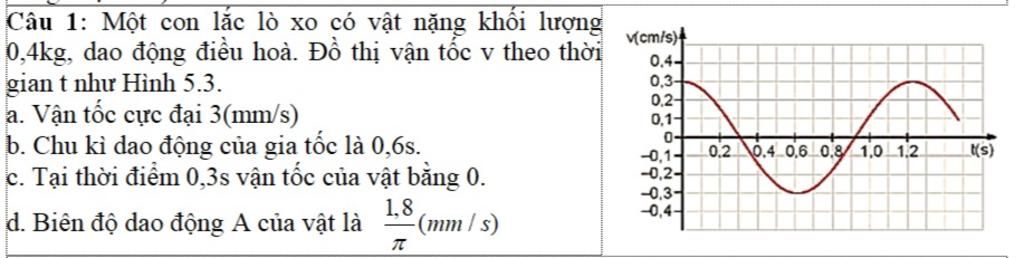 c. Tại thời điểm 0,3s vận tốc của vật bằng 0.