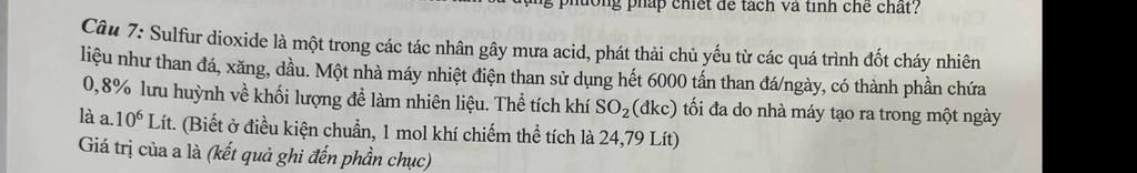 `m_(S) = 6000xx0,8% = 48` (tấn) `=48xx10^(6)` `(g)`
