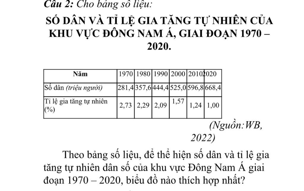 Câu 2: Cho bảng số liệu: