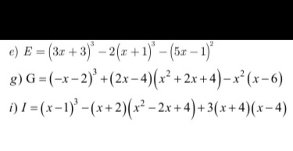 `e)` `E=(3x+3)^3-2(x+1)^3-(5x-1)^2`