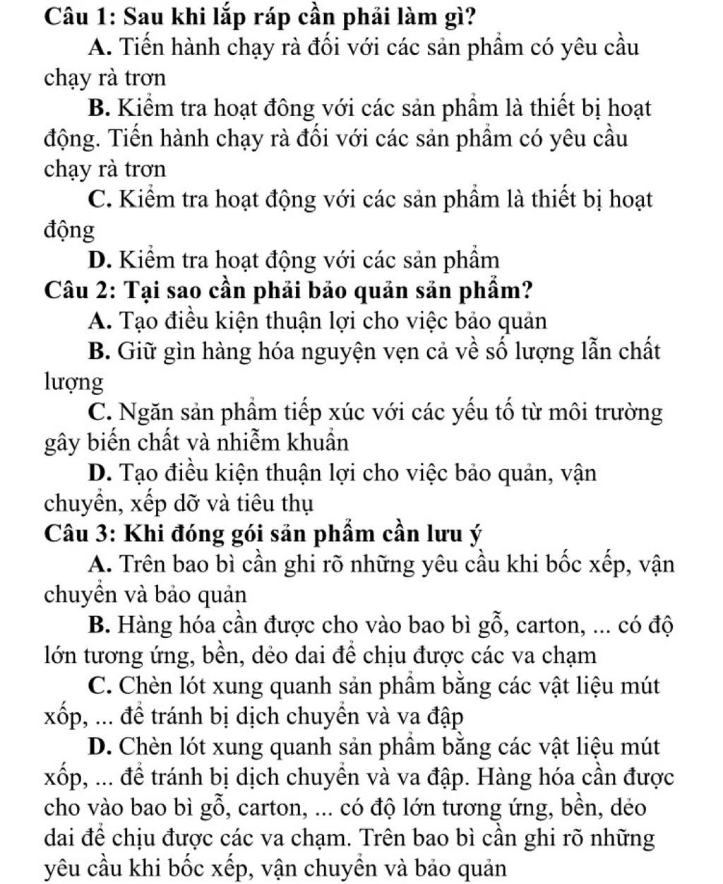 Câu 1: Sau khi lắp ráp cần phải làm gì?