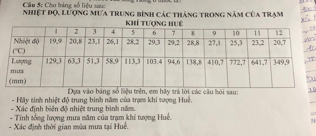 - Nhiệt độ trung bình năm của trạm khí tượng Huế: