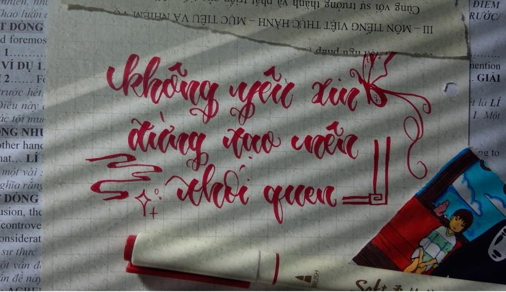 Calligraphy : không yêu xin đừng tạo thêm thói quen .NL : nửa tháng nữa thi vẫn bắt đi học văn buổi chiều :))
