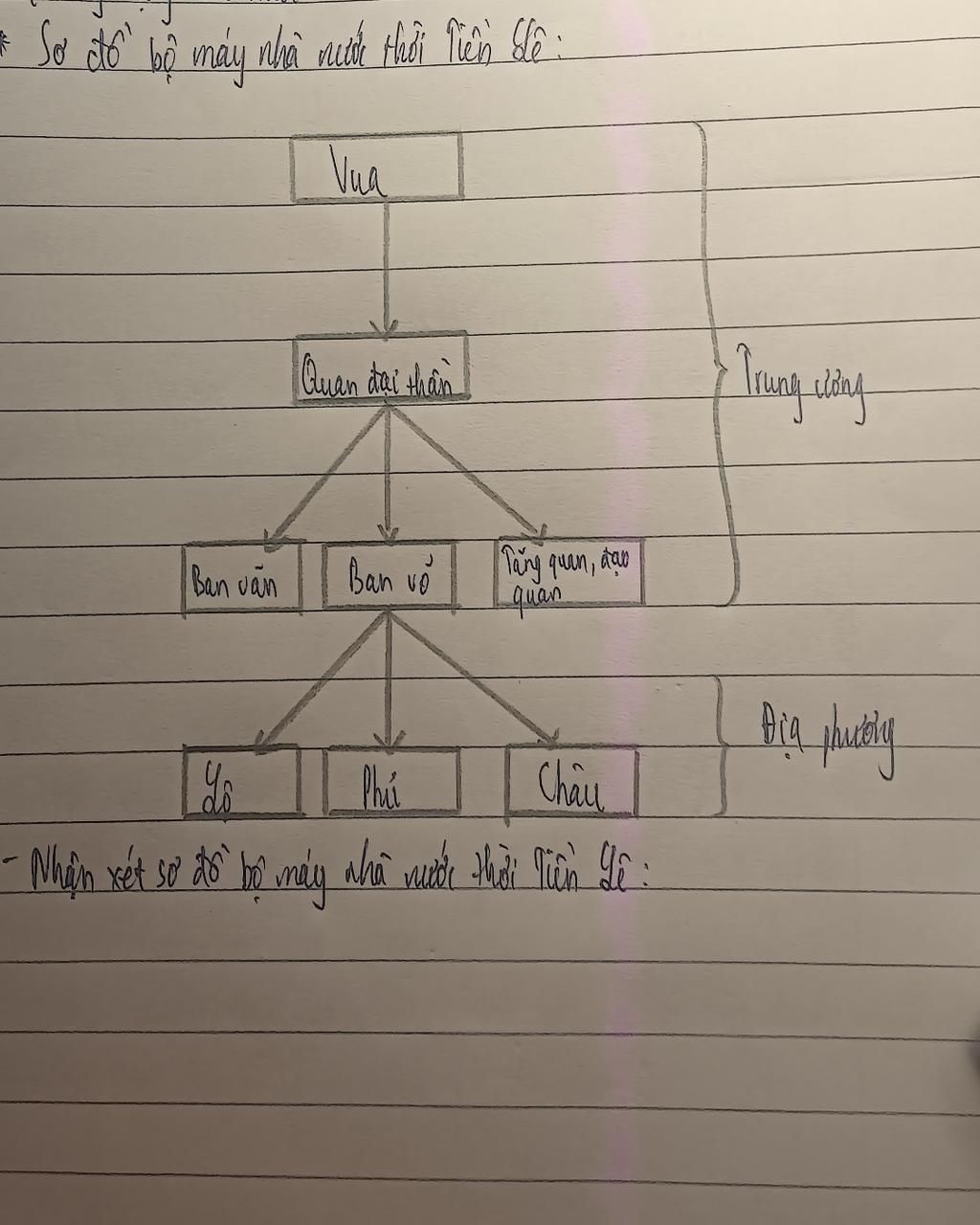 → Nhìn chung, bộ máy nhà nước thời Tiền Lê đơn giản nhưng chặt chẽ, quyền lực tập trung vào tay vua, góp phần củng cố sự ổn định và bảo vệ đất nước.