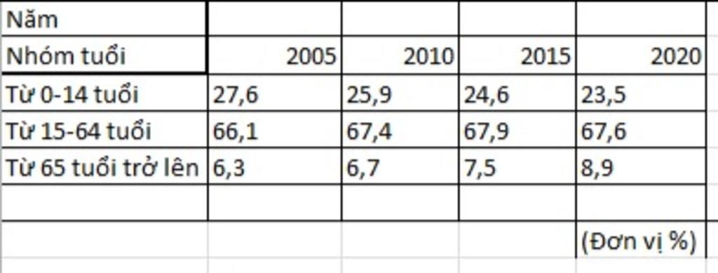 Cho bảng số liệu sau : Bảng 6.1 Cơ cấu dân số theo nhóm tuổi của châu Á ( không tính số dân của liên bang Nga )