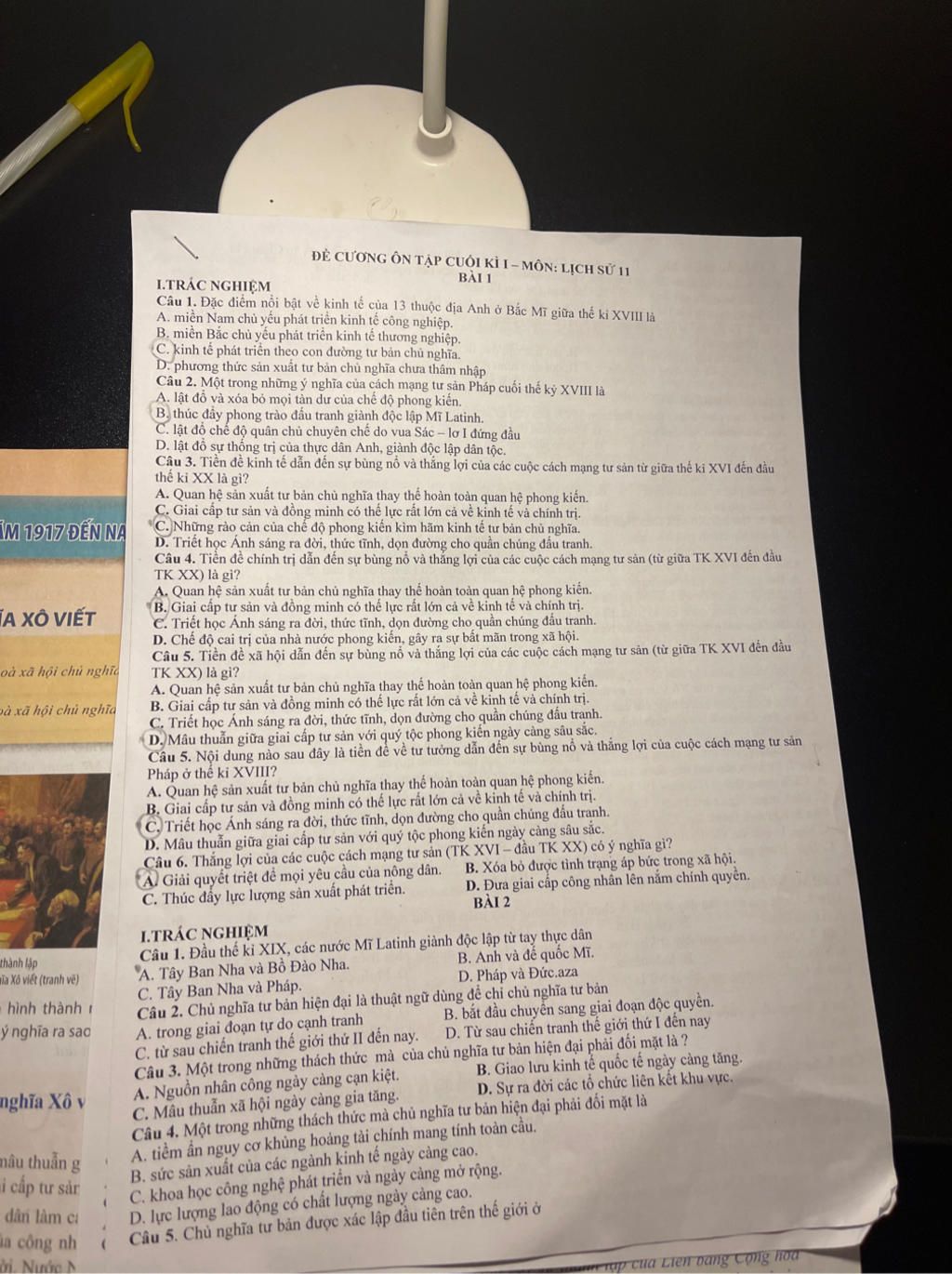 ĐỀ CƯƠNG ÔN TẬP CUỐI KÌ I – MÔN: LỊCH SỬ 11
