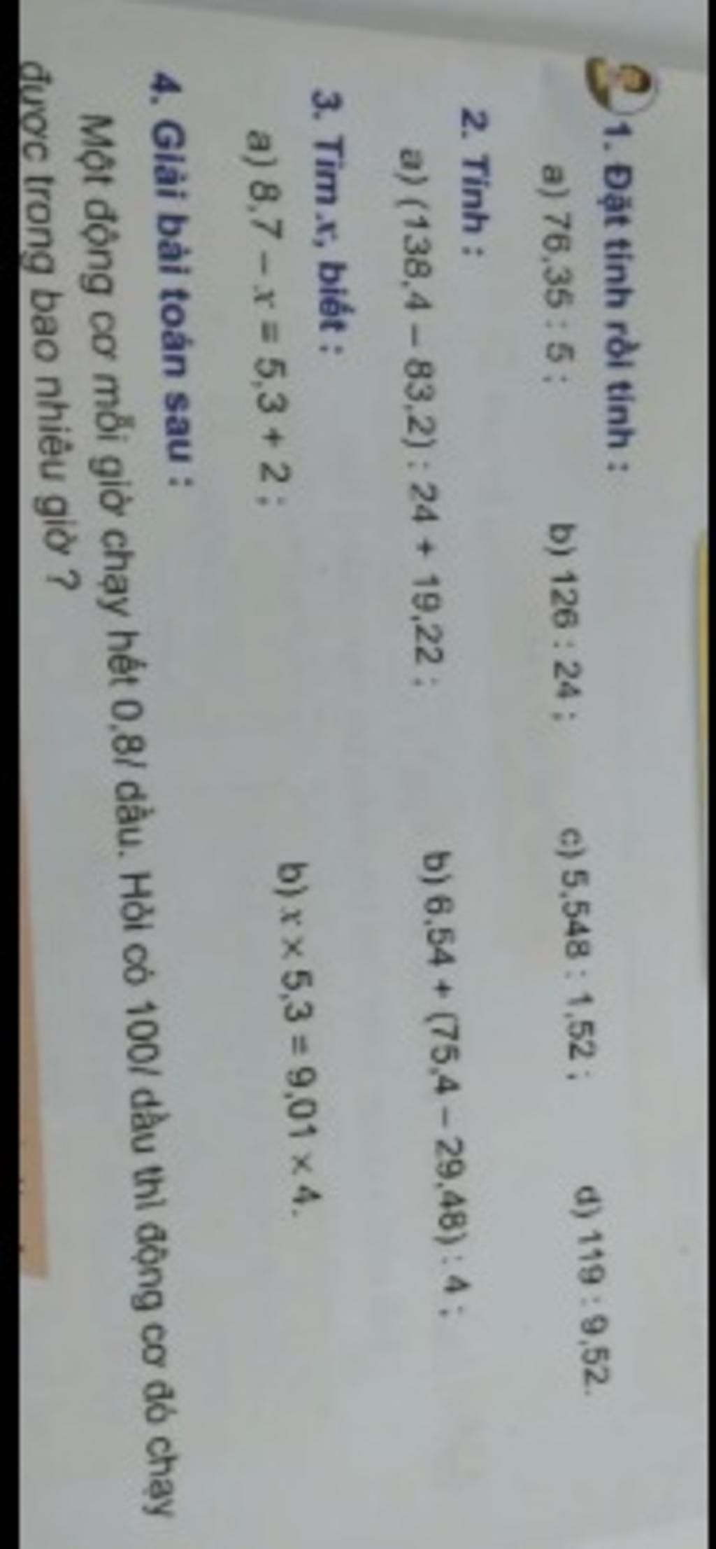 `100 : 0,8 = 125` `(` giờ `)`