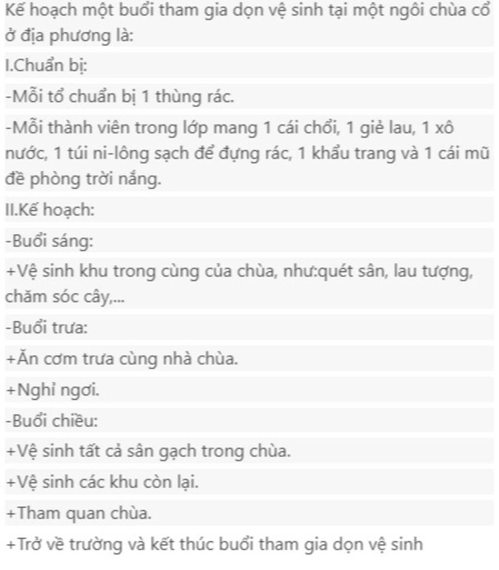 Em thấy xây dựng kế hoạch một buổi tham gia dọn vệ sinh của lớp em tại di sản văn hóa của địa phương em