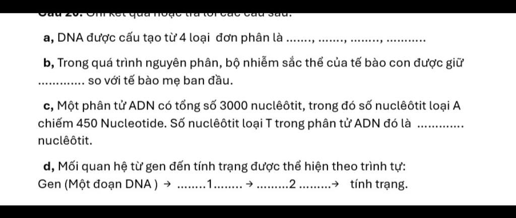 a, DNA được cấu tạo từ 4 loại đơn phân là