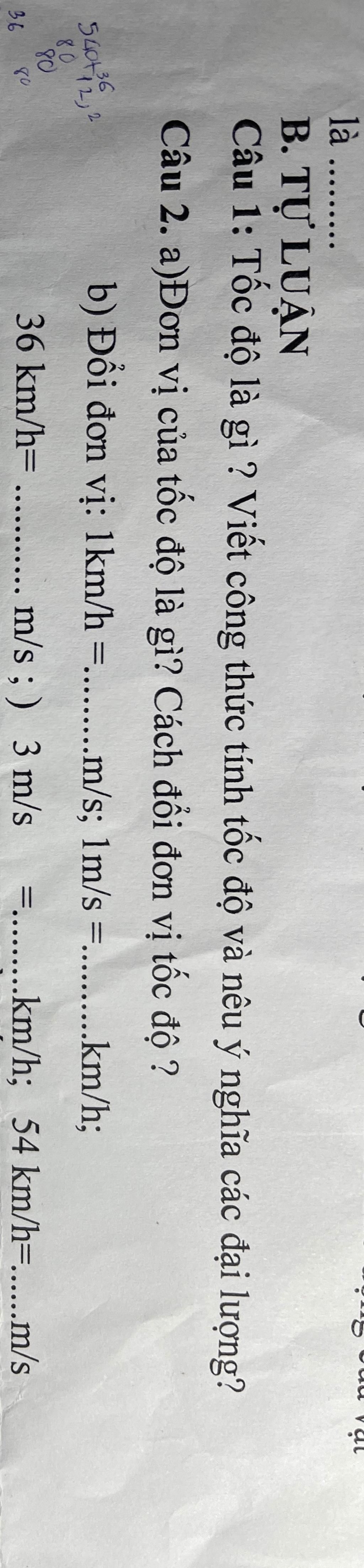 `a)` `-` Đơn vị của tốc độ là quãng đường/một đơn vị thời gian
